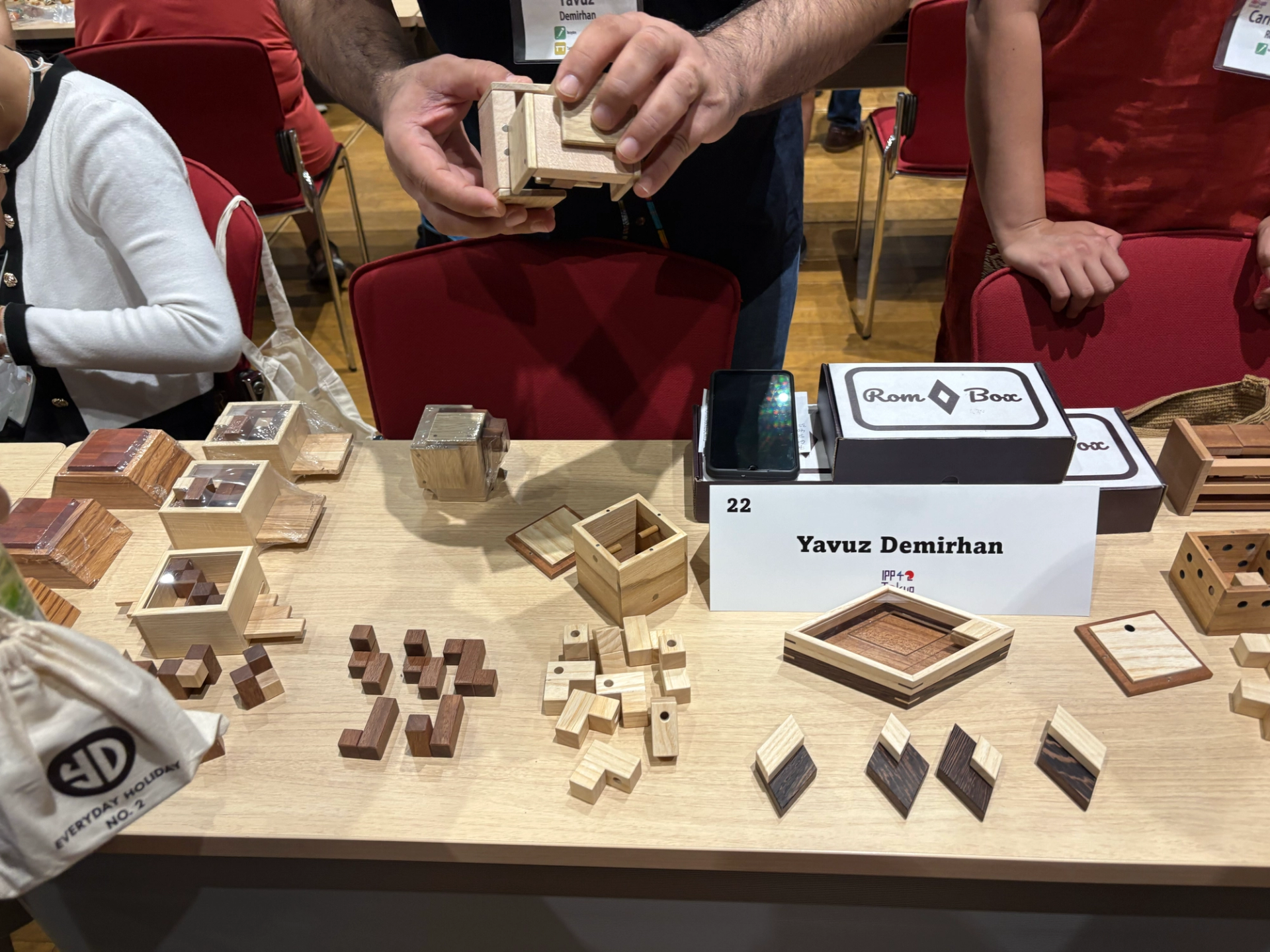Then I visited Yavuz Demirhan's booth to buy Rombox, another entry in this year's design competition. I already owned one puzzle from his Squary Pack series, and he told me that Rombox would be the last puzzle in that series. It had yet another interesting move and felt like a perfect finale to the series.