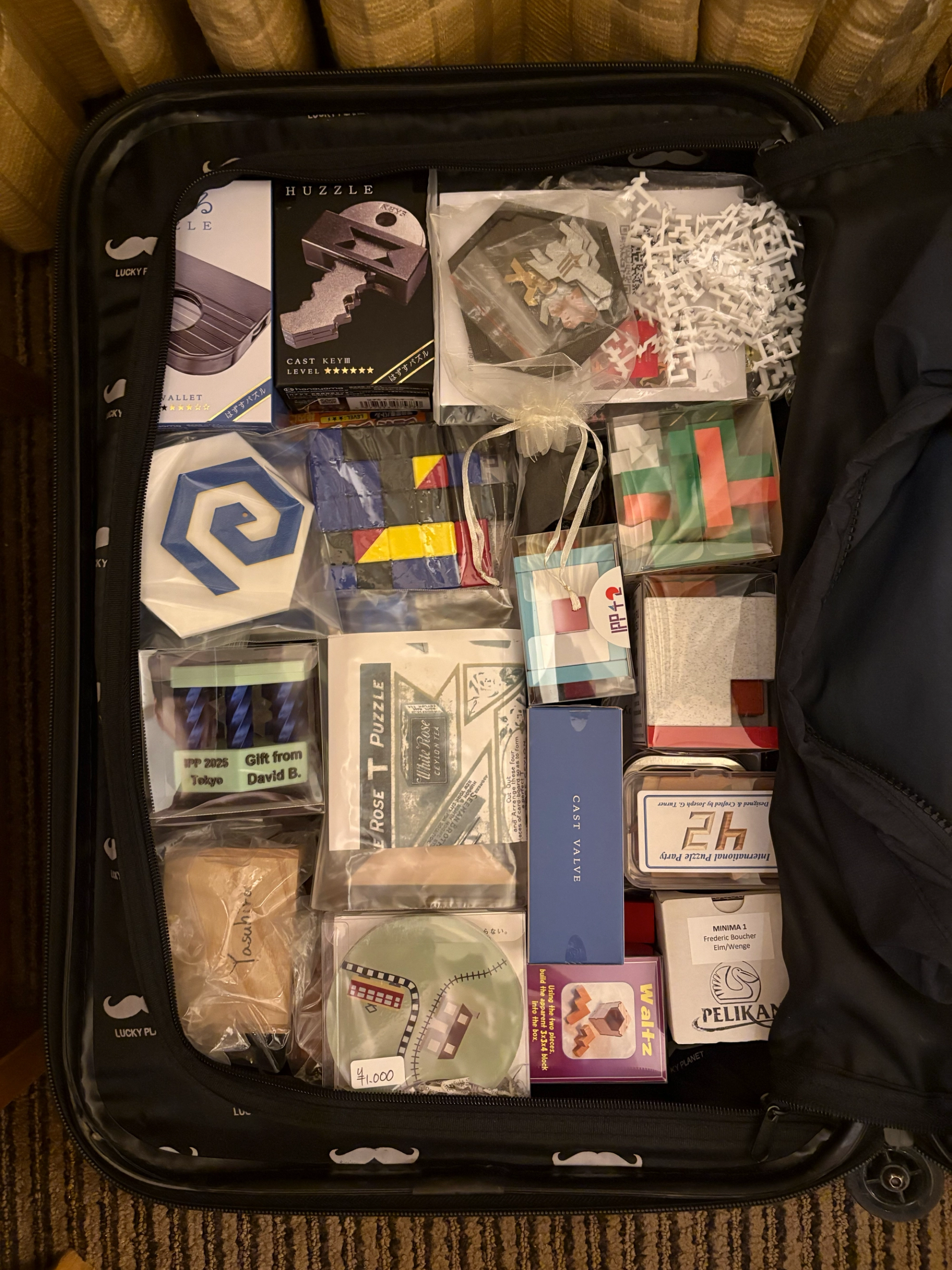 After the Puzzle Party, I had to solve the real-world packing puzzle: fitting all the puzzles in my suitcase. In fact, the puzzles alone were enough to fill up my suitcase, so I had to buy another bag for my clothes and other stuff.