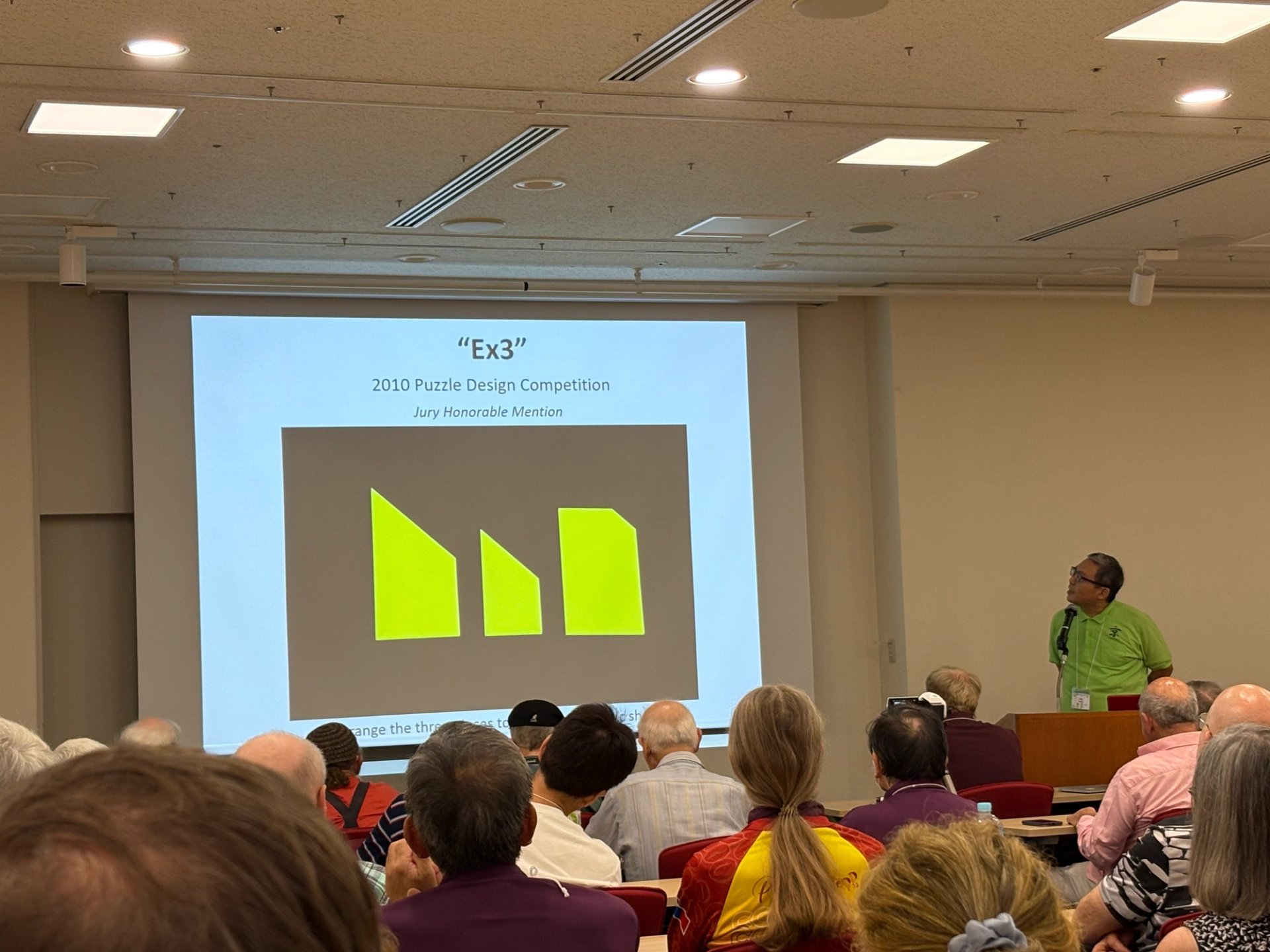 Personally, I wanted to meet Hiroshi Yamamoto, because his puzzle Copy Device was an inspiration for my puzzle Canal. Ex 3 is another of his masterpiece, which popularized the symmetry puzzle genre. I didn’t know until Lixy Yamada’s lecture that he passed away in 2024. I wish I’d had the chance to talk with him in person.