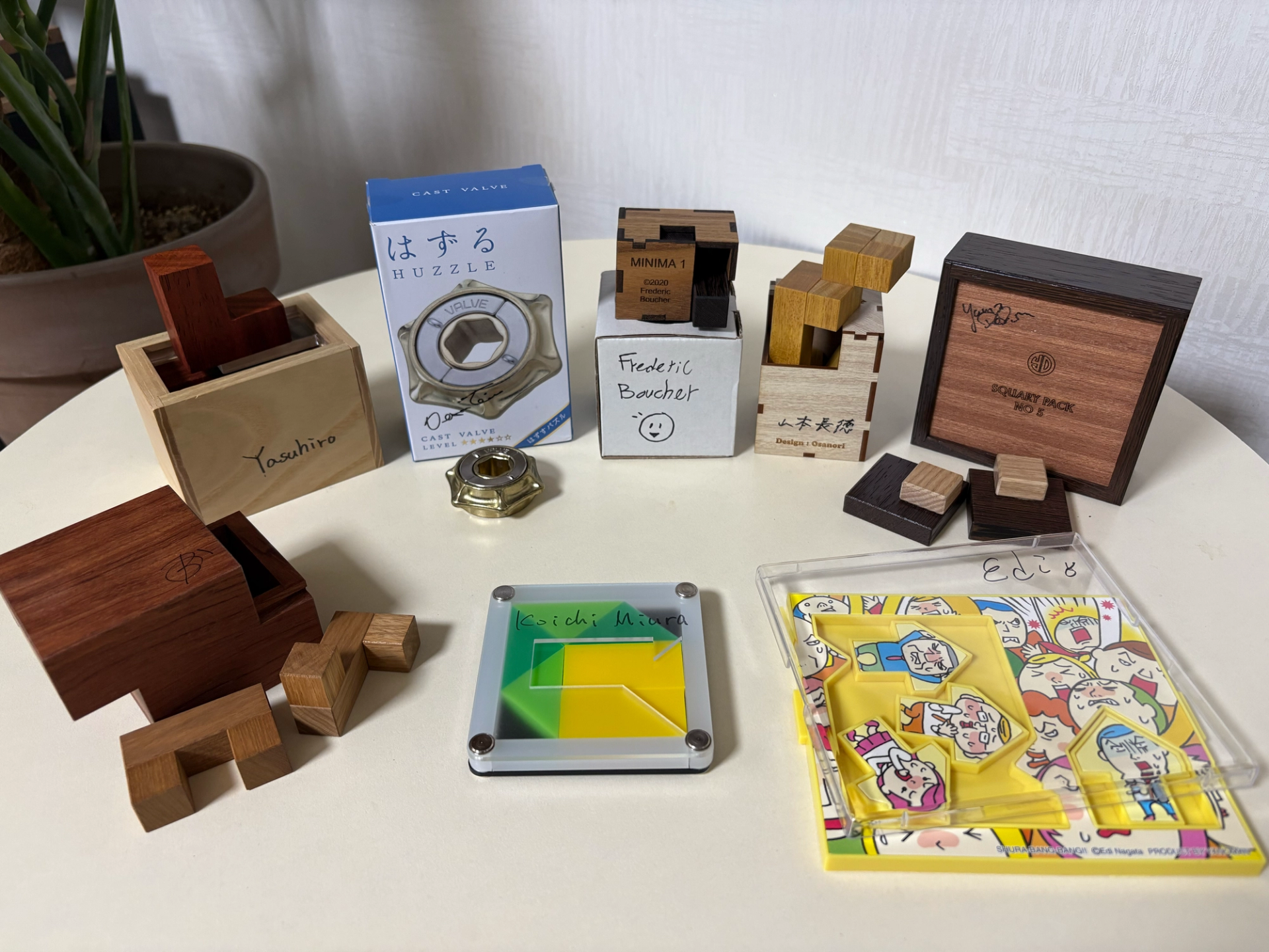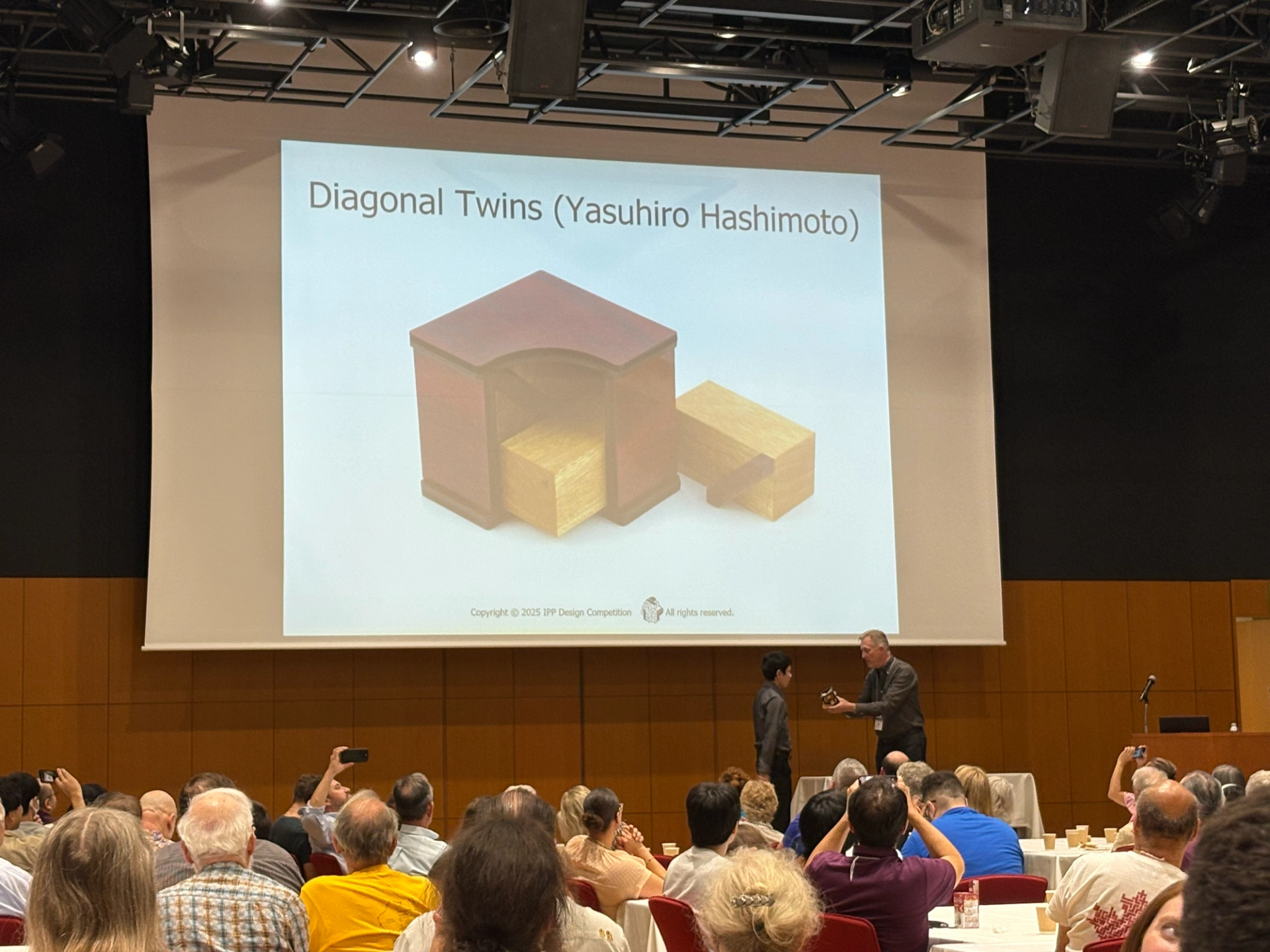 Through Koichi Miura’s presentation, I was able to peek into how he thinks when designing puzzles. His puzzles are always innovative and elegant, so they’re among my favorite pieces in my collection. I found his philosophy interesting, that a great puzzle emerges when you strike a balance between what seems obvious and what seems impossible.