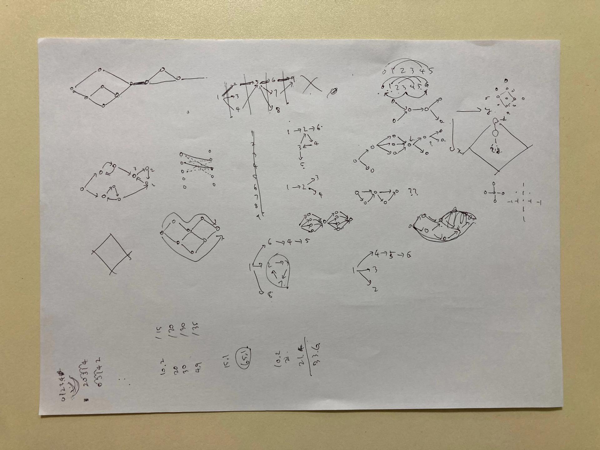 그런데 예제에 대한 답조차 나오지 않았다. 자세히 보니 Path cover 문제와는 약간 다른 형태였다. Path cover에서는 경로끼리 겹치지 않아야 하는데, 이 문제에서는 경로가 겹쳐도 되기 때문이다. 예제를 단순화한 반례 데이터와 그 옆에 물음표 두 개를 그려 놓고 이걸 어떻게 해결해야 하나 고민하다가 포기하고 2번으로 돌아갔다.