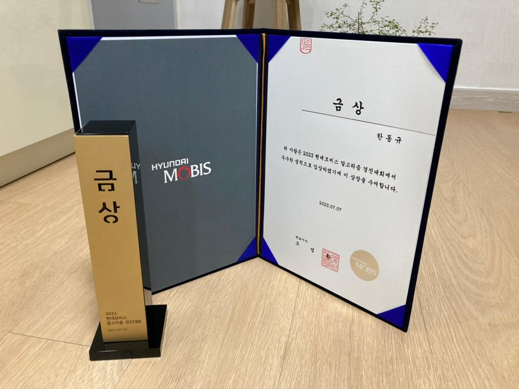 진행자 분께서 1등 소감을 말해달라고 하셨다. 다들 알다시피 현대모비스 알고리즘 대회에서 1등을 하면 차를 주는데 (23년은 스포티지 하이브리드) 나는 면허가 없다. 짧고 굵게 “무면허 운전 잘 하겠습니다!” 라고 외쳤다.