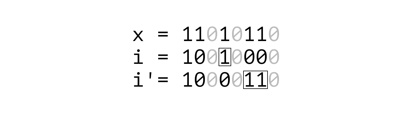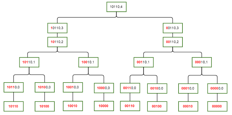 - 번째 비트가 0인 원소들은 오른쪽 개 비트만이 와 달라질 수 있으므로, 모으면 와 같습니다.